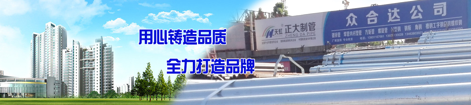 公司主要经营:焊管、镀锌管、螺旋管、钢塑管、涂塑管、架子管、无缝管、方管、椭圆管、异形管、角钢、槽钢、工字钢、H型钢、圆钢、螺纹钢、开平板、中厚板、镀锌圆钢、镀锌扁钢、镀锌角钢、镀锌槽钢、镀锌方管、镀锌无缝管、外墙干挂件及光伏支架等产品。